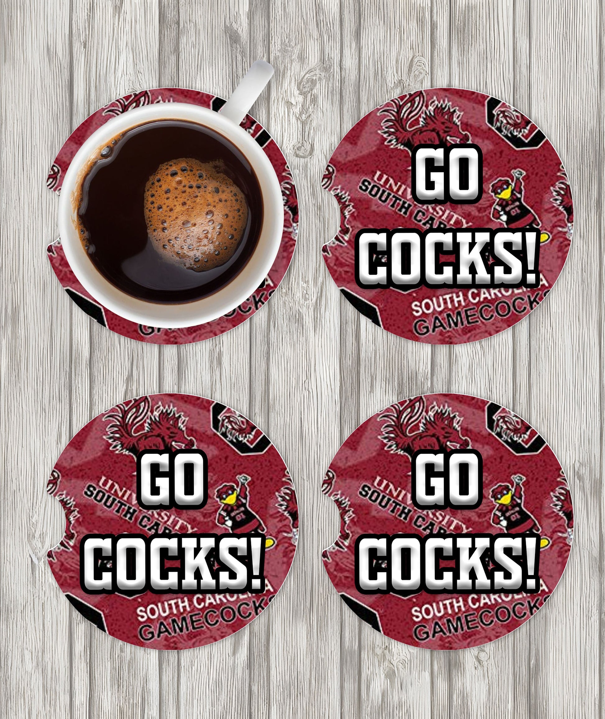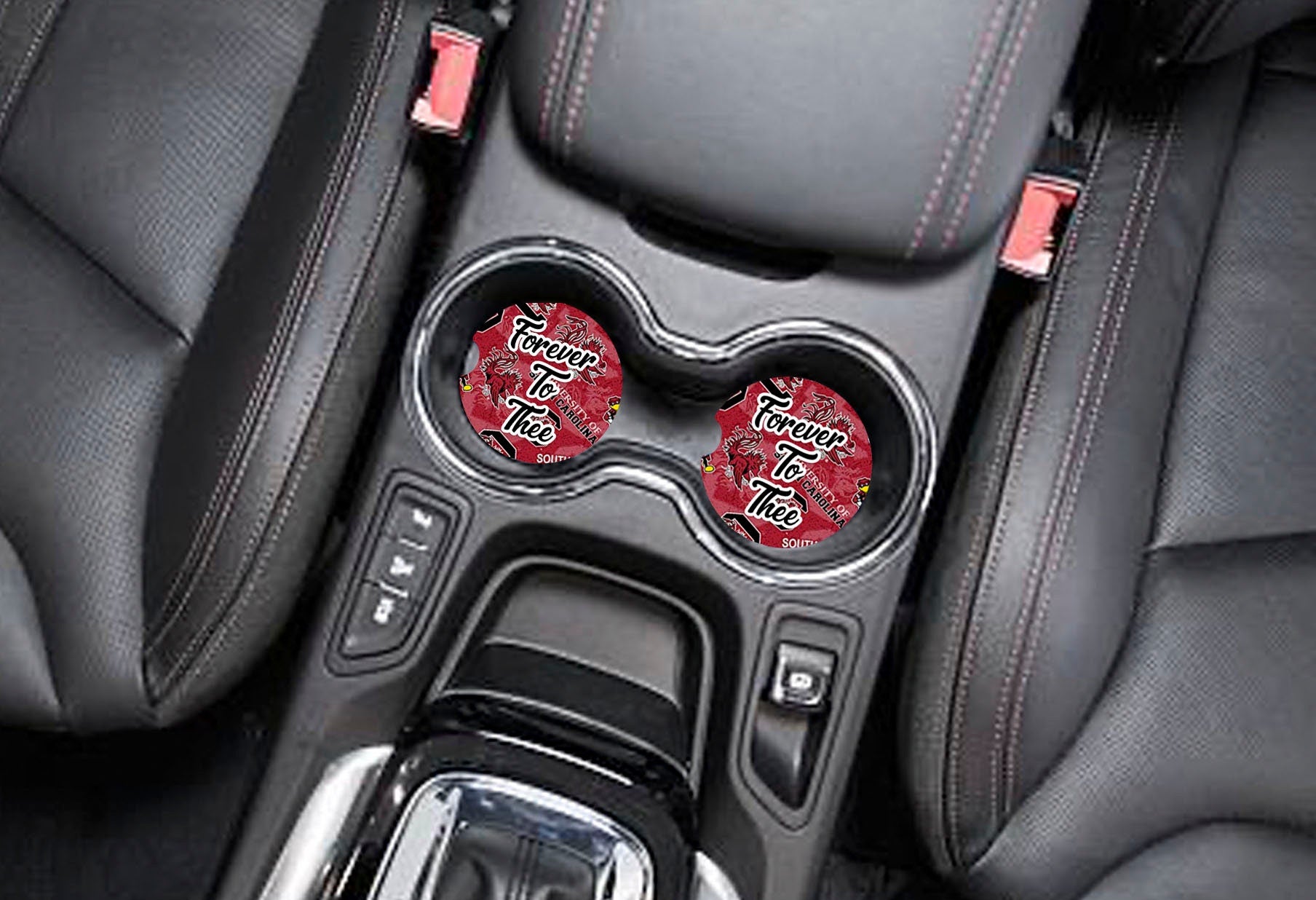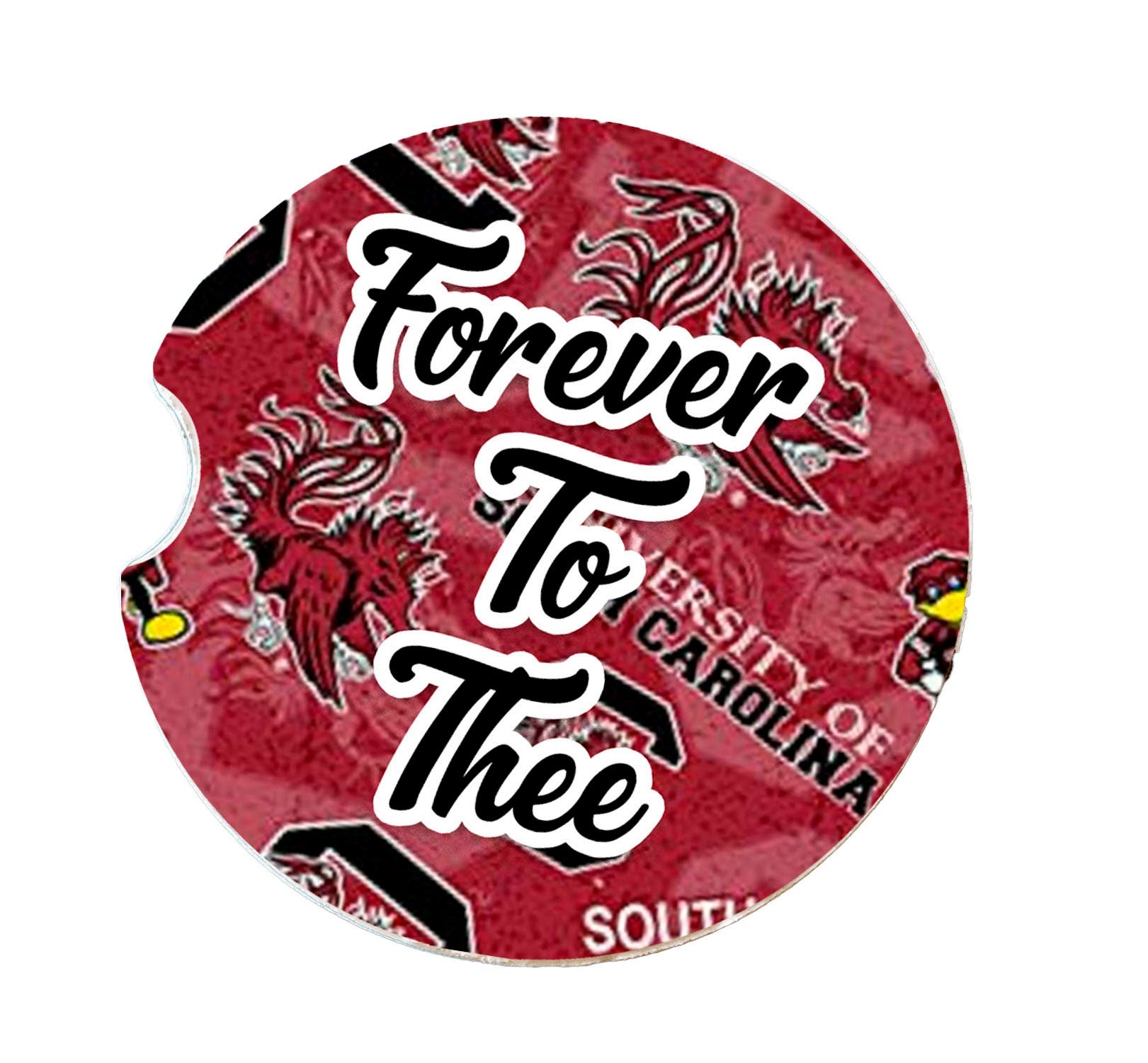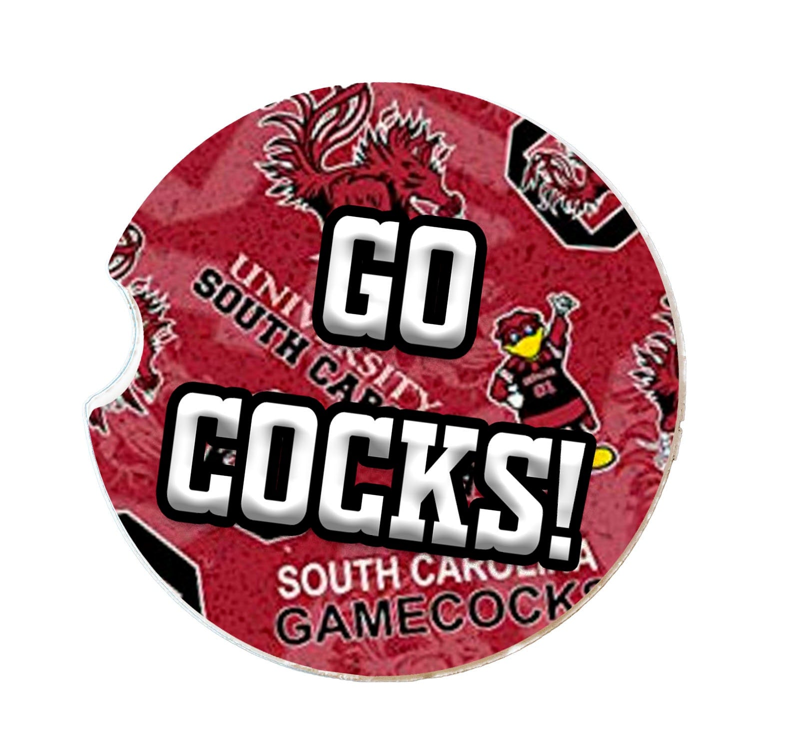 Show your school spirit with these Gamecock themed ceramic car coasters. These coasters are the perfect addition to any car. These 2.5" coasters are made from absorbent ceramic stone that easily absorb the water from the outside of the cup and brings your favorite team to your car. Gift these USC coasters to your favorite Gamecock fan, friends, family, student, or Alumni. Choose from two different styles. Both have the same Gamecock themed background, but different cheers. Get either Forever to Thee or Go Cocks! or both to show your Cocky Spirit! Sandstorm is calling. One order is a set of two coasters.