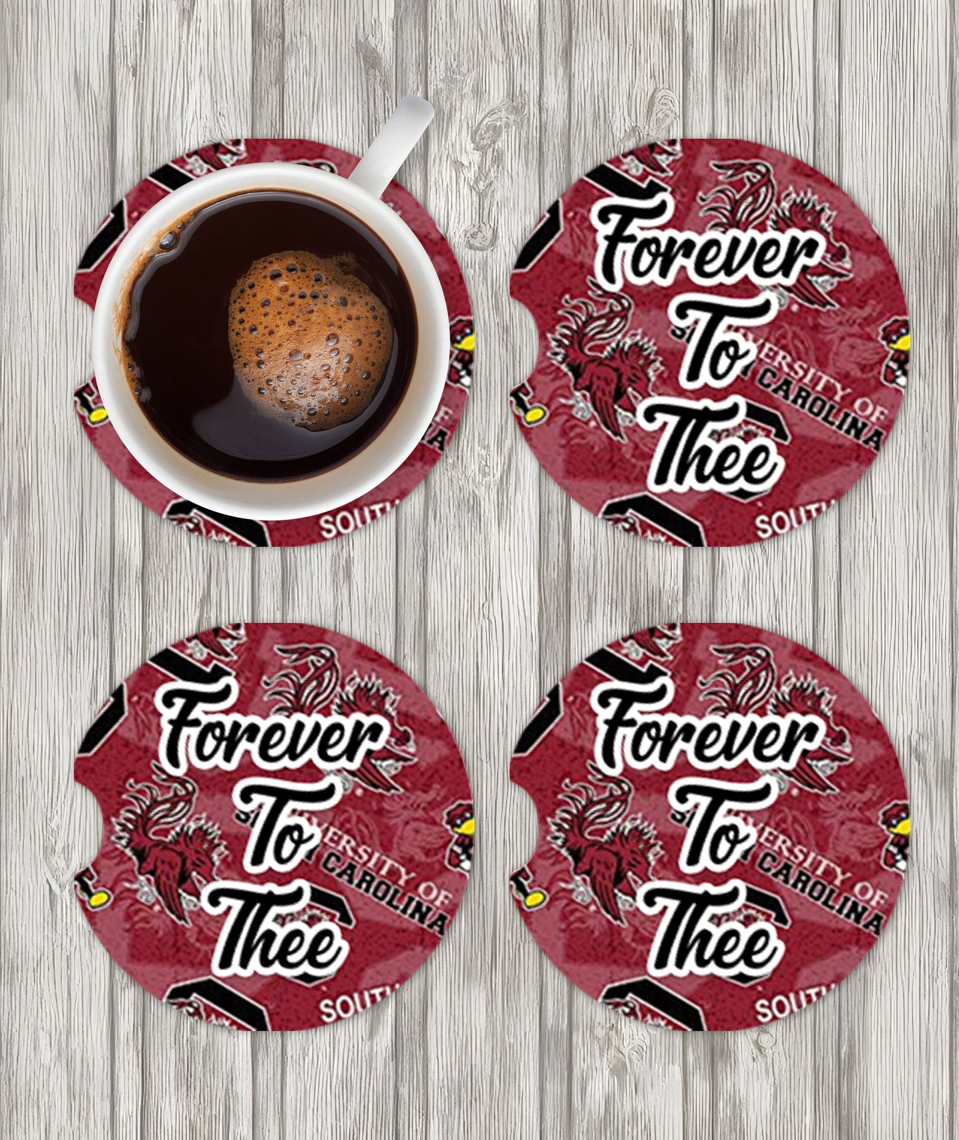 Gamecock influenced Ceramic Car Coasters- University of South Carolina Car Coasters- USC Fan Gifts- Forever to Thee Alumni Gift