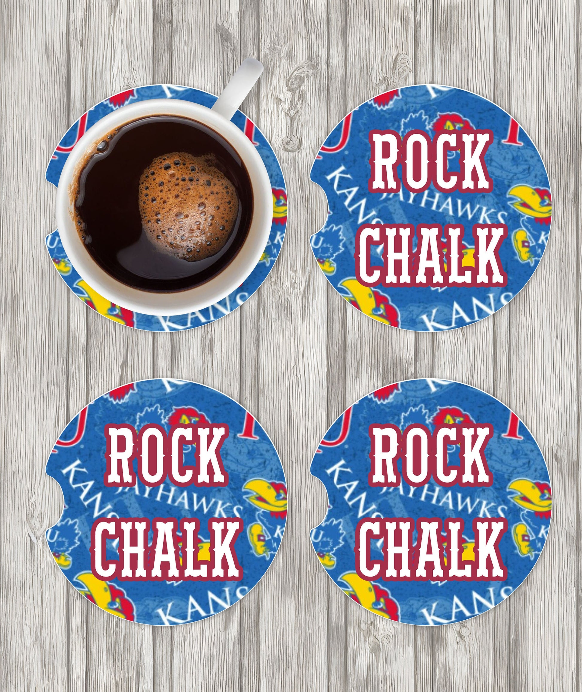 Jayhawk influenced Ceramic Car Coasters- University of Kansas Car Coasters- KU Fan Gifts- Rock Chalk gift