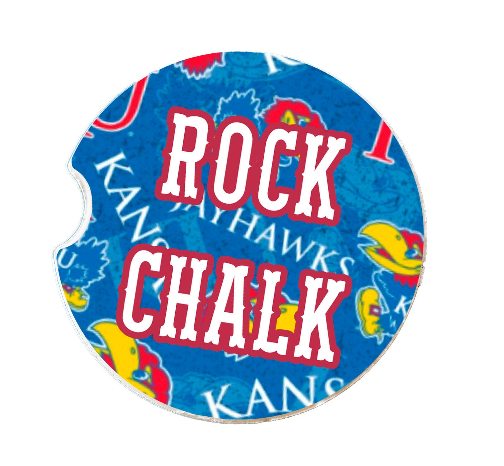 Rock Chalk Jayhawks! Show your school spirit with these Jayhawk themed ceramic car coasters. These coasters are the perfect addition to any car. These 2.5" coasters are made from absorbent ceramic stone that easily absorb the water from the outside of the cup and brings your favorite team to your car. Gift these KU coasters to your favorite Jayhawks fan, friends, family, student, or Alumni. One order is a set of two coasters. One order is a set of two coasters.