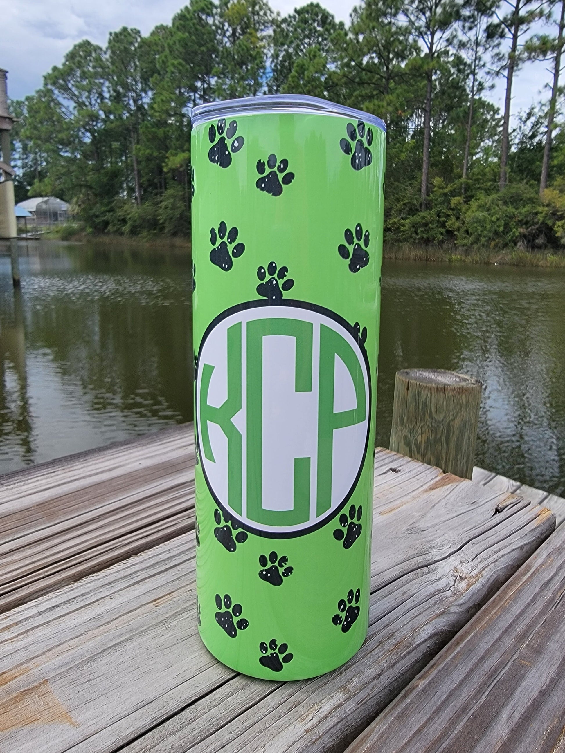 These 20 oz. tumblers are eye catching and perfect for Back to School to show your school spirit. They are insulated stainless steel to keep your cold drinks cold and hot drinks hot. These tumblers come with a straw and can be customized with your monogram.