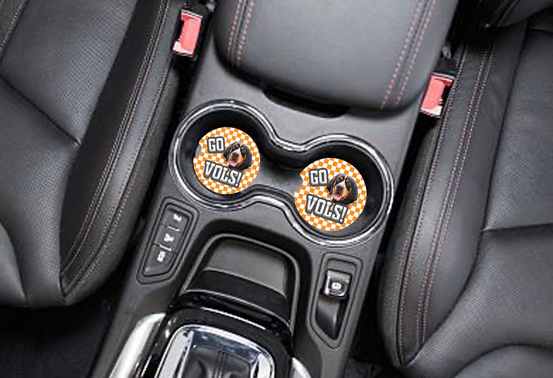 University of Tennessee influenced Ceramic Car Coasters- Vols Car Coasters- Vols Fan Gifts- University of Tennessee Gift