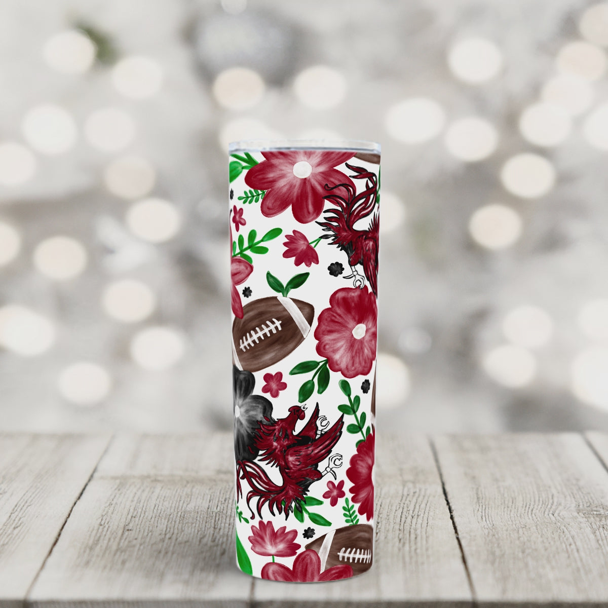 Gamecocks Floral Football 20 oz. Tumbler-University of South Carolina Tumbler