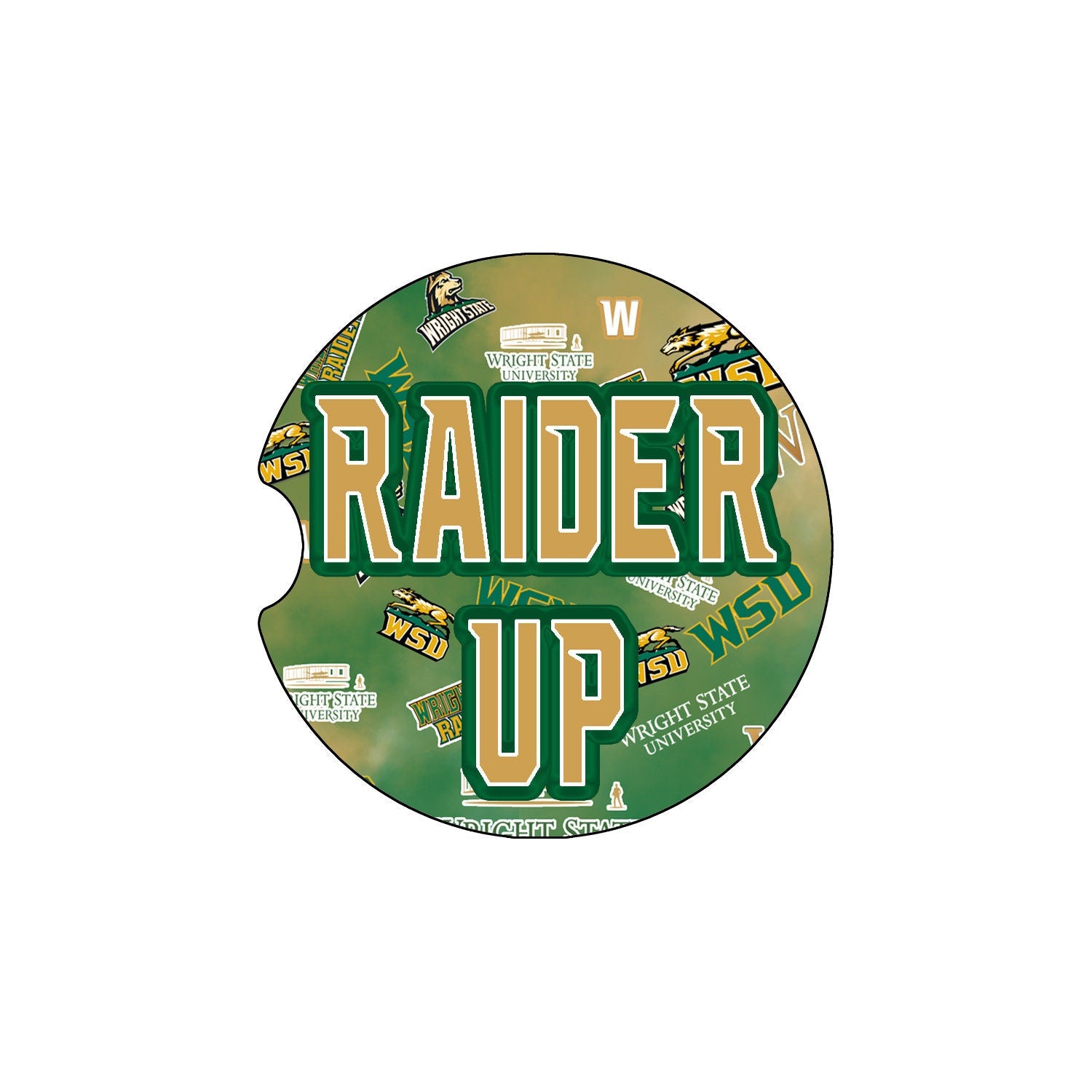 Show your school spirit with these Raider themed ceramic car coasters. These coasters are the perfect addition to any car. These 2.5" coasters are made from absorbent ceramic stone that easily absorb the water from the outside of the cup and brings your favorite team to your car. Gift these WSU coasters to your favorite Raiders fan, friends, family, student, or Alumni. Choose from two different styles. Both have the same WSU themed background, but different cheers. Raider Up! One order is a set of two coasters.